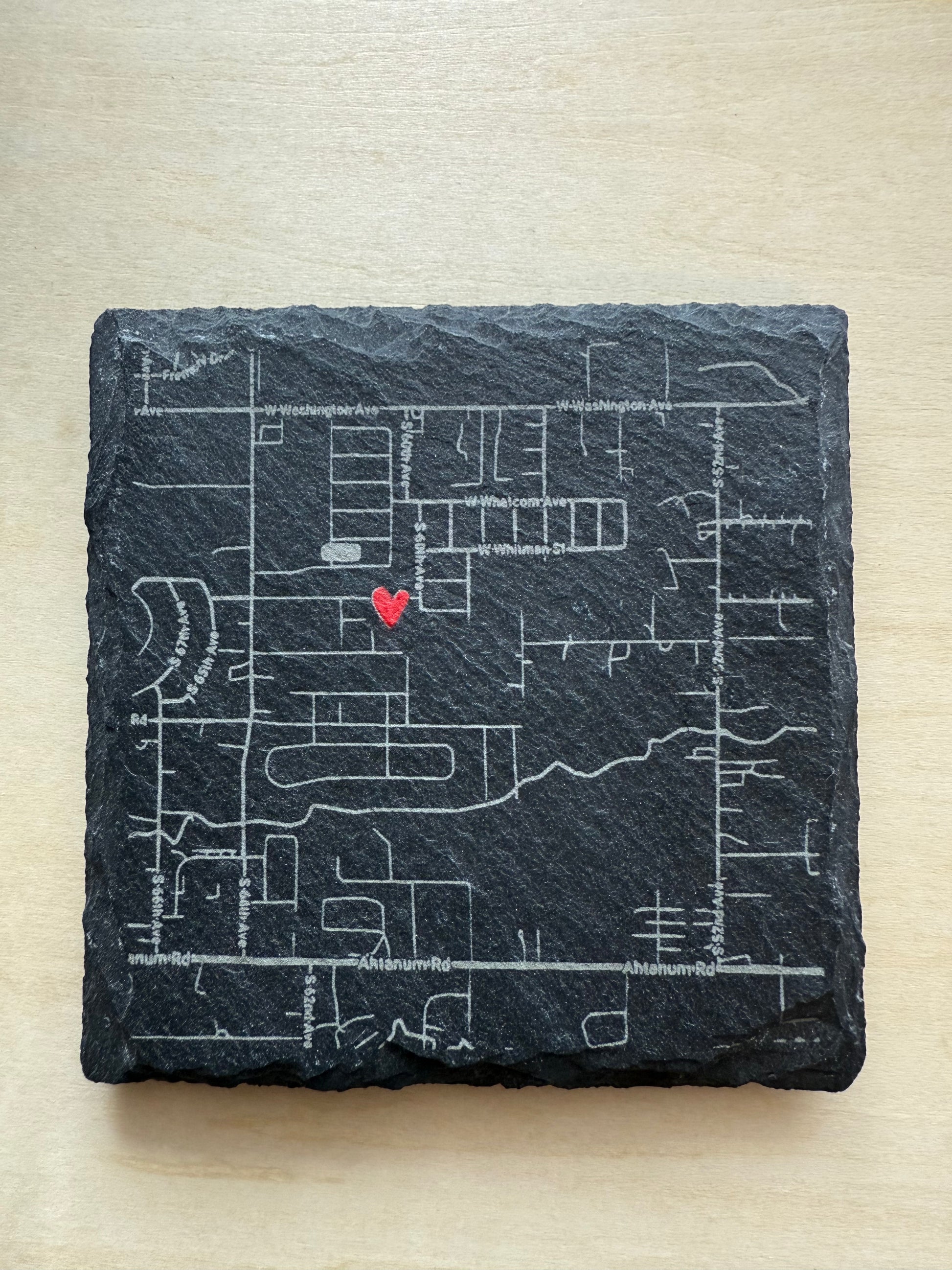 ‘Home is Where the Heart Is’ custom map slate coaster set (4)