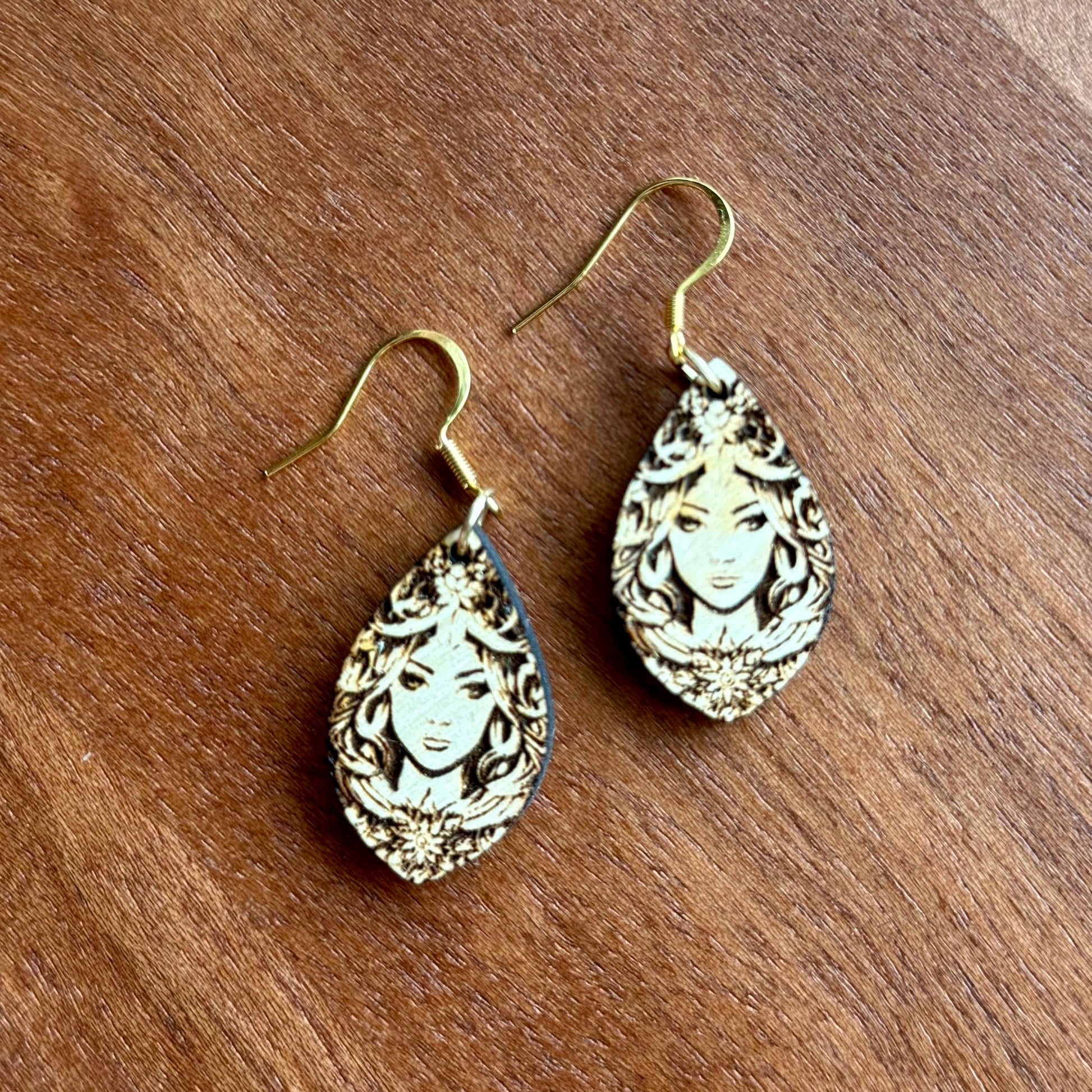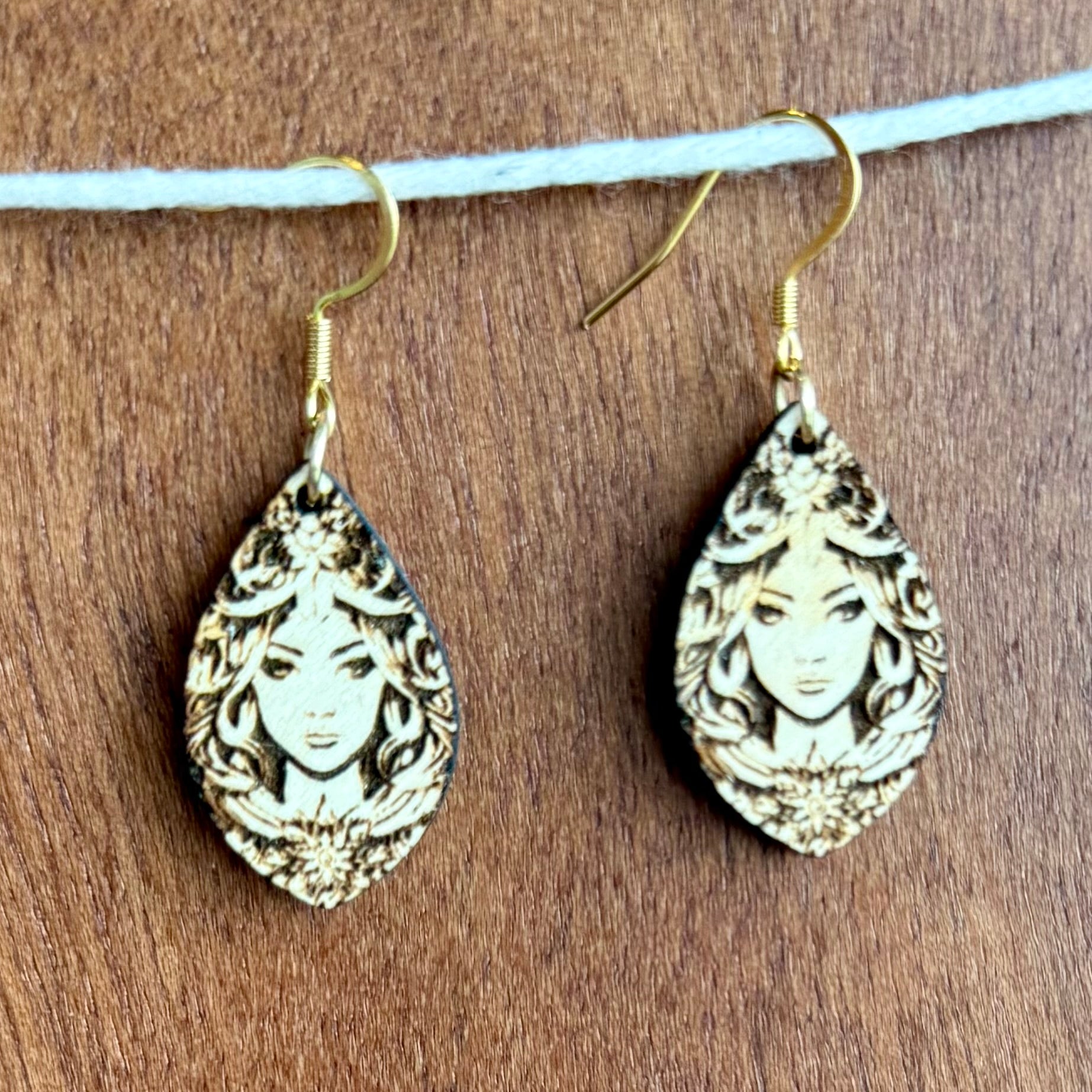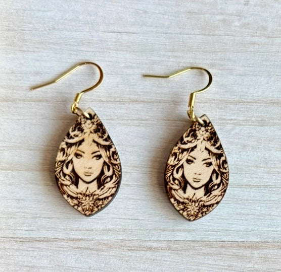 Bold yet graceful, these wooden teardrop earrings showcase an intricate queen motif. Crafted from natural wood, they’re lightweight and comfortable while adding a touch of strength and elegance to any look.